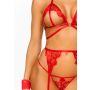Met het dragen van dit uitdagende rode lingerie setje zal verleiden als nature gaan. Deze lingerie set bestaat uit een opencup harnas BH met hartvormige ring waardoor je decolleté prachtig gevormd zullen worden. De jarretelgordel zorgt ervoor dat er een prachtig zandloper figuur gecreëerd wordt en de pikante string met blote details zorgt voor nog meer opwinding en sensatie tussen jullie beiden. Ook zitten er bijpassende manchetten bij deze set inbegrpen. De 4-delige lingerie set is bedekt met prachtig rood kant waardoor deze set een romantische uitstraling krijgt.