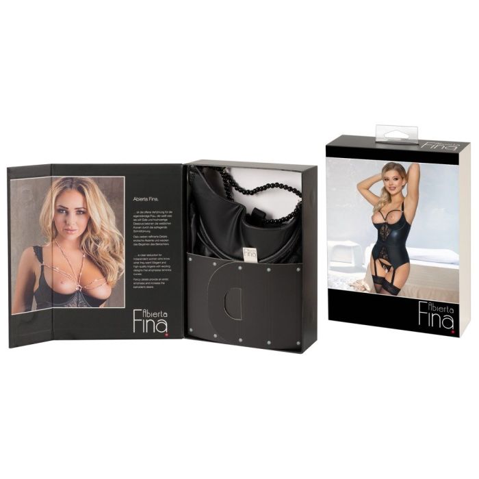 Abierta Fina Kanten Jarretelbody Open Cups - Zwart