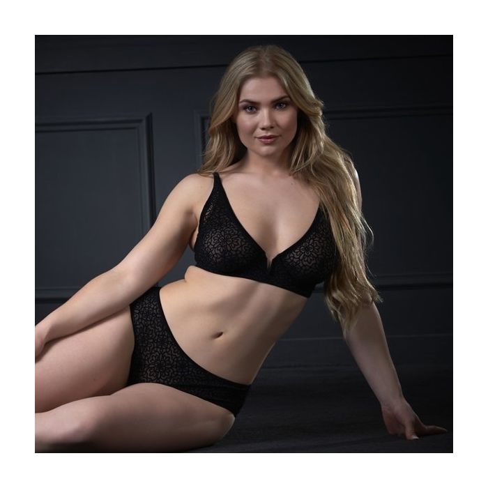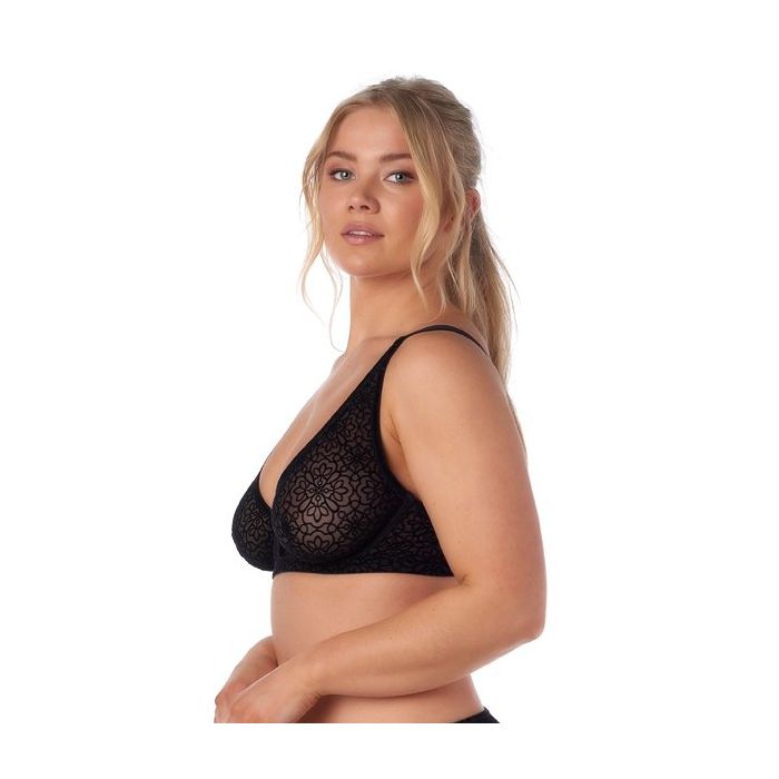 De Becky Beugel BH - Zwart van After Eden is een chique bh met een uniek design. Deze prachtige beugel bh is geheel gemaakt van zacht, stretch micro mesh voor een heerlijk zacht comfort. Het micro mesh schijnt verleidelijk door en is voorzien van een sierlijk Flock Print. De Flock Print zorgt ervoor dat het patroon van bloemen fluweel zacht aanvoelt.