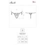 De bijpassende string is aan de voor- en achterkant ook gemaakt van transparante stof met rode en zwarte borduursels. Aan de smalle, elastische tailleband zijn goudkleurige kettinkjes bevestigd met sprankelende accenten.