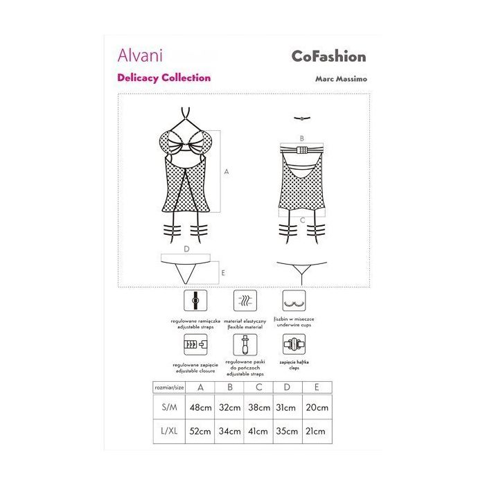 In het Alvani Jarretel Jurkje laat jij jouw lichaam super sexy uitkomen. Het jurkje komt uit de Delicacy serie van het merk CoFashion en is goed te combineren met de kousen uit deze serie.