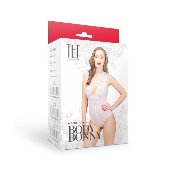 Jouw partner zal meteen overdonderd zijn wanneer jij in de Bonny Body - Wit verschijnt. Deze body uit de collectie van TET Lingerie is gemaakt van materialen van hoge kwaliteit. Het zachte tule en sierlijke kant voelen heerlijk aan en zijn lekker rekbaar voor een goede pasvorm. In de voorkant is een dubbel keyhole decolleté gecreëerd en in het rugpand is ook een keyhole uitsparing gemaakt. Rond de schouders is hierdoor een charmant kraagje van kant ontstaan. Het kruisje is gevoerd met katoen en voorzien van een handige haaksluiting.