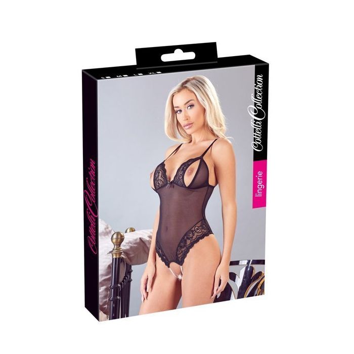 Ga voor een sexy look met de Bonny Kruisloze Body van Cottelli Collection. Deze body is gemaakt van transparant tule en sierlijke details van kant. De cups zijn beugelvrij en hebben een peek-a-boo effect. Tussen de cups is een klein strikje aangebracht. Het open kruis is voorzien van 2 parelkettingen. De parels lopen masserend langs jouw meest intieme zones.
