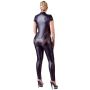 Het broekpak heeft eens stijlvol opstaand kraagje en een 2-way rits in de voorkant. De rist in de voorkant loopt vanaf het kraagje helemaal door tot op de achterkant. Ook over de cups zijn ritsjes aangebracht om jouw tepels plagerig bloot te leggen.