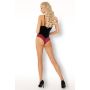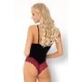De cups van de Caris Body zijn gemaakt van dezelfde zwarte stof als het lijfje en zijn overtrokken met sierlijk roze / rood kant. Doordat de cups niet gevoerd zijn en geen beugels hebben krijg je in deze body een prachtig natuurlijk gevormd decolleté. Met de verstelbare schouderbandjes maakt je de body en de cups op de juiste maat voor jouw lichaam. Onderaan is de body afgewerkt met sierlijk doorschijnend kant voor een sensuele look.
