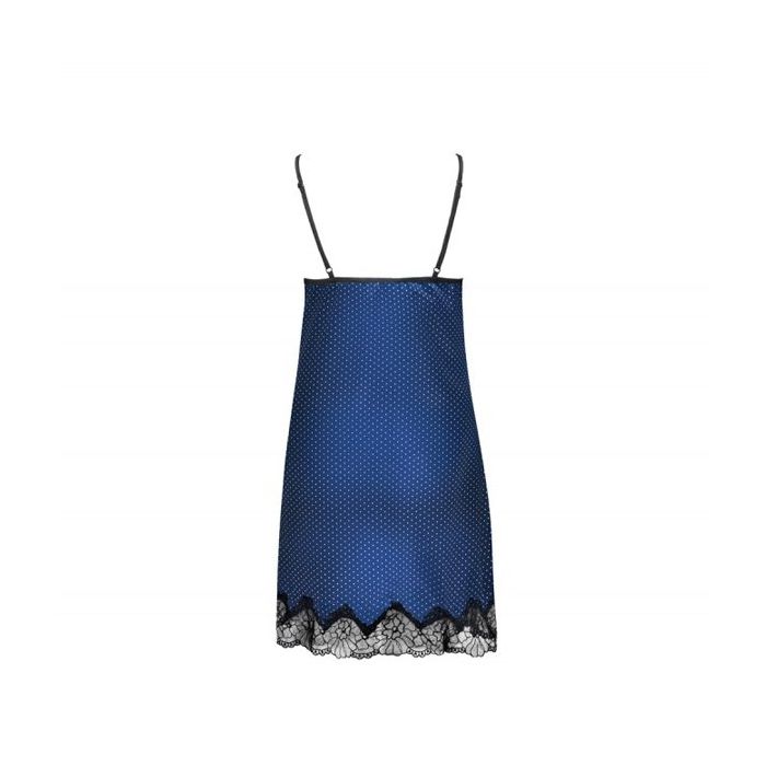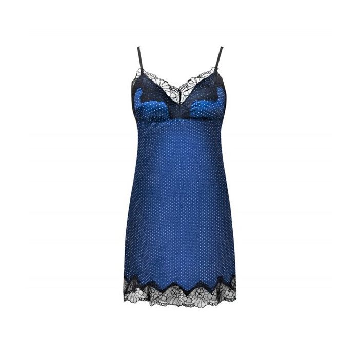 De Chagall Chemise is een prachtig nachtjurkje uit de Secret Garden Collection van het merk Livco Corsetti en heeft een soepel vallende pasvorm. Het elegante nachtjurkje is gemaakt van licht glanzende, gladde stof dat heerlijk aanvoelt en is afgewerkt met sierlijk zwart kant over het decolleté en aan de onderste rand van de chemise. De charmante donkerblauwe stof heeft een speelse witte polka dot print. De cups zijn niet gevoerd en niet voorzie van beugels, zodat de natuurlijke vorm van je borsten behouden wordt.