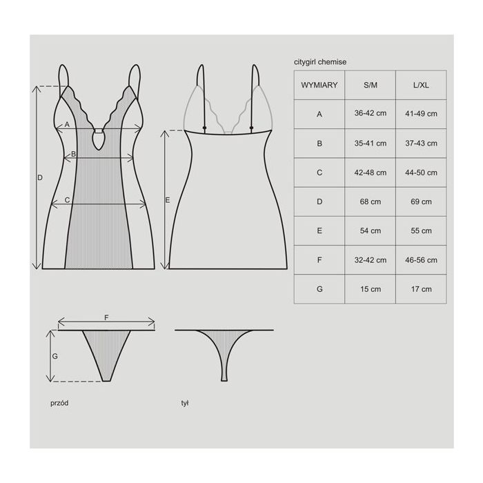 De Citygirl Chemise is een zeer elegante chemise van Obsessive gemaakt van een flexibele, doorschijnende stof. Het decollete is versierd met kant en de schouderbandjes zijn verstelbaar. Wordt geleverd met bijpassende string.