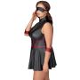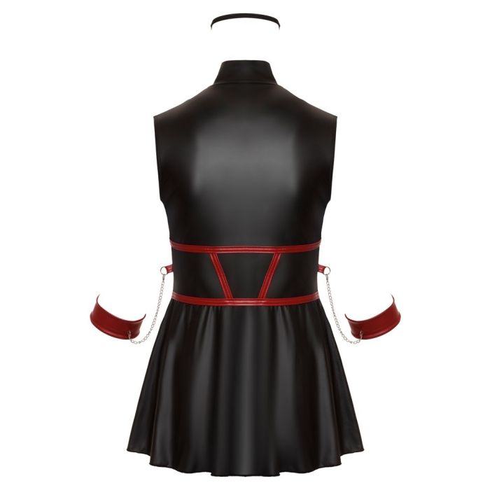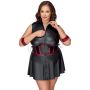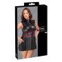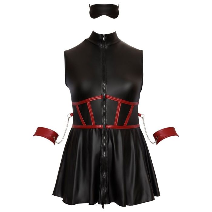 Dit gewaagde jurkje uit de Cottelli Collection zit heerlijk strak rond je vrouwelijke vormen en is geschikt voor dames met een maatje meer. Het jurkje is gemaakt van wetlook materiaal, met stretch kwaliteit en is afgewerkt met rode baleinen. Het jurkje is lekker kort en heeft armboeien voor een kinky look. Dit jurkje is perfect om je partner mee te verleiden of om te dragen naar een spannend feest! De bijgevoegde blinddoek zorgt voor nog een beetje extra spice... Kortom, met het dragen van de Cottelli Curves Elegante Mini-Jurk ben jij gegarandeerd van een spannende nacht.