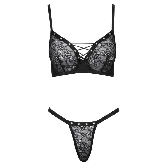 Cottelli Kanten Lingerie Set met Veters - Zwart