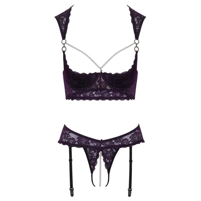 Cottelli Lingerie Elegante Open Lingerie Set - Donkerpaars
