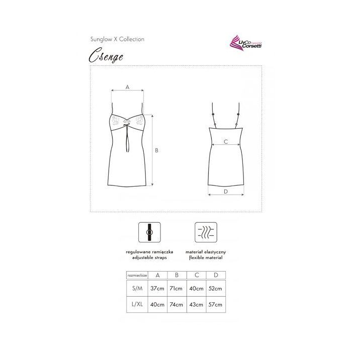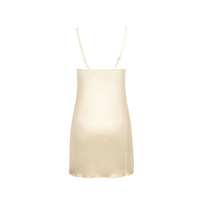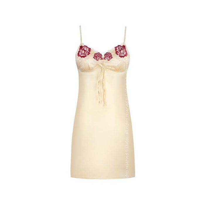 De cups van de chemise zijn niet gevoerd en hebben geen beugels voor een natuurlijke buste. Het jurkje valt soepel en heeft een vrij recht model. Met de smalle, verstelbare schoduerbandjes maak je dit jurkje goed passend.