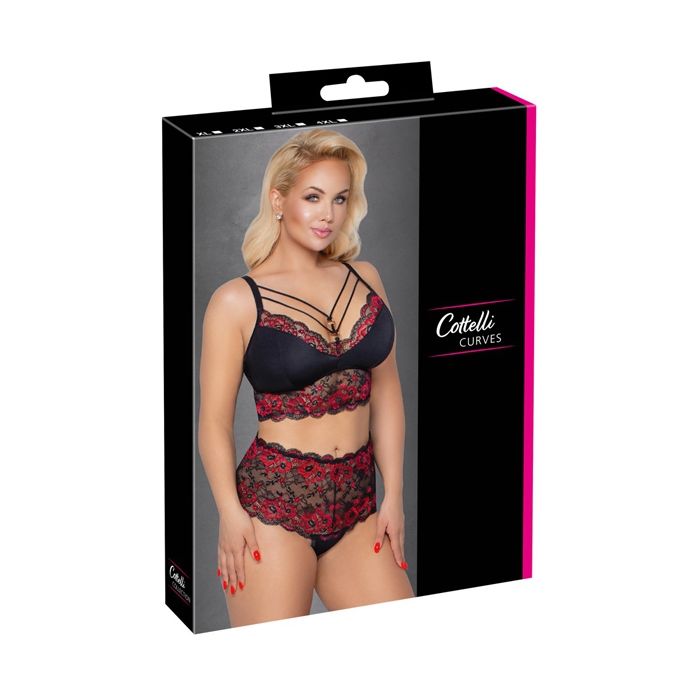 Laat jouw rondingen prachtig uitkomen in de Curves Beautiful Lace Set. Deze spannende, tweedelige set komt uit de Curves plus size serie van het merk Cottelli Collection. De set bestaat uit een longline bralette bh en een hoge bandeau string.