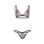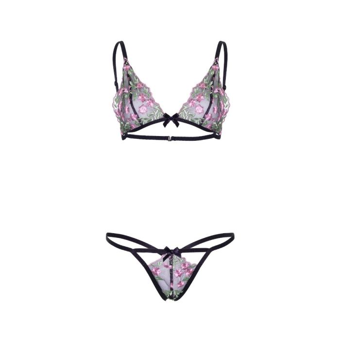 Leg Avenue Doorschijnende BH & String Met Geborduurde Bloemen - Zwart