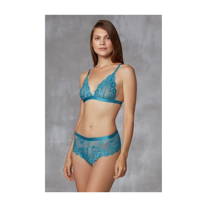 De Lingerie Set - Emerald van het merk Doreanse is een charmante set bestaande uit een bralette top en hipster slip. De top en slip zijn gemaakt van prachtig bloemen kant met sierlijk geschulpte randjes. Het kant is voorzien van stretch en ook de taillebanden zijn elastisch voor een perfecte pasvorm.