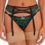 Met de Show-off Jarretel - Zwart kun je jouw prachtige lingerie look helemaal compleet maken voor een spannende avond. Deze jarretel is gemaakt om je partner te verleiden. Aan de voorkant heeft de jarretel prachtige gekleurde accenten in het blauw en groen waardoor de jarretel een luxe uitstraling krijgt. Kortom, in deze luxe jarretelgordel wordt verleiden nog leuker!