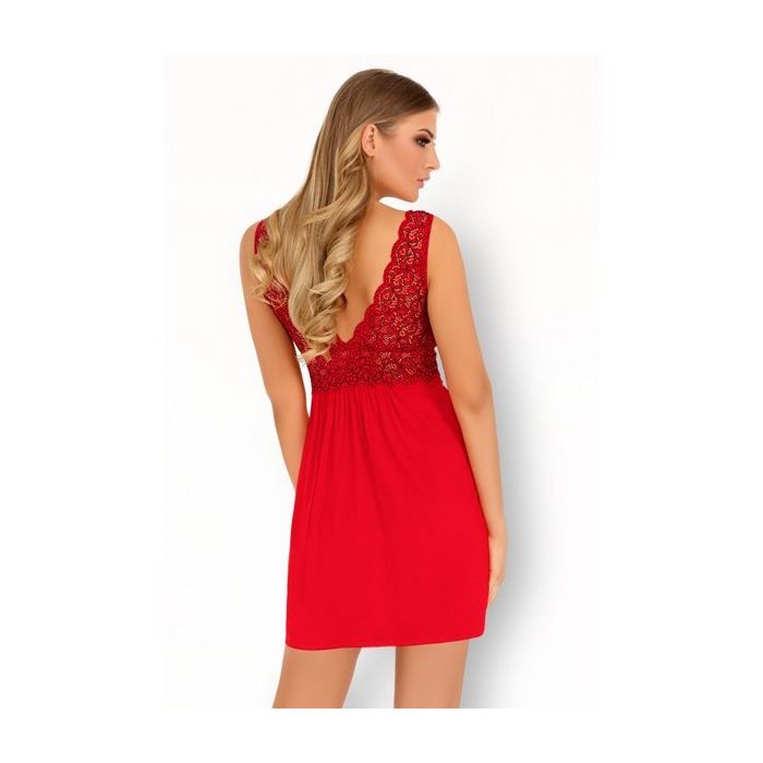 Het jurkje wordt geleverd met een bijpassende rode string beiden gemaakt van heerlijk zacht en soepel materiaal.