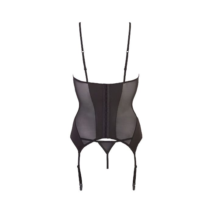 Dit prachtige setje van Cottelli Collection is gemaakt van zachte zwarte stof en doorschijnend zwart powernet. De mat zwarte en doorschijnende stof wisselen elkaar in banen af, waardoor er een afslankend en figuur accentuerend effect ontstaat.