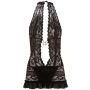 Het stijlvolle Kanten Jurkje - Zwart van Cottelli Collection is geheel gemaakt van zacht, elastisch zwart kant en heeft een zeer laag uitgesneden decolleté. Net onder de buste zijn twee sierkettinkjes aangebracht die je borsten accentueren en je een classy look geven. Dit mini jurkje met halter sluiting is zo kort dat het maar net je billen bedekt. Er is een kruisloze string in het jurkje genaaid zodat je lekker snel toegankelijk bent. Met dit kanten jurkje aan word je meteen een heerlijk seks presentje voor je partner.