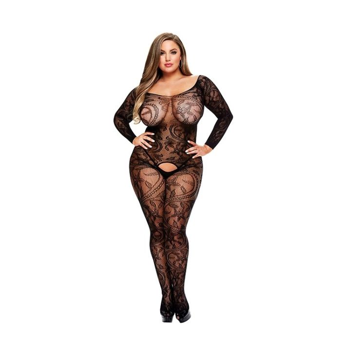 De adembenemende Longsleeve Crotchless Bodystocking QS van Baci Lingerie is gemaakt van heerlijk zacht en doorschijnend materiaal. Het materiaal heeft een hoge rekbaarheid voor een perfecte en aangename pasvorm. Deze fraaie bodystocking heeft lange mouwen, een ronde hals en een open kruis voor easy access. In deze bodystocking met sierlijk bloemenpatroon zul jij zeker een staande ovatie teweeg brengen.