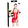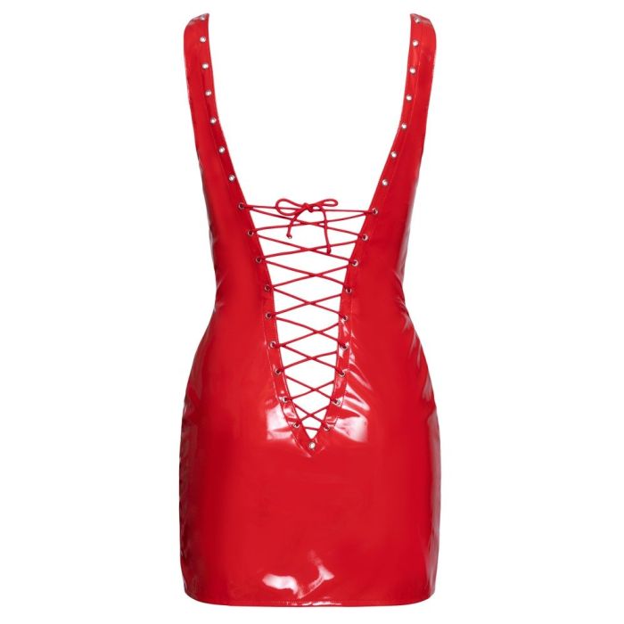 Maak je wilde fantasieën nóg vuriger! Ontdek al het genot wat deze spannende jurk te bieden heeft. Deze spannende jurk is geheel in rood lakleer en heeft korte mouwen. Het jurkje heeft een nauwsluitende en getailleerde pasvorm en hierdoor worden je vrouwelijke vormen goed benadrukt worden. Daarnaast is zowel de voor- en achterkant extra laag uitgesneden en sexy vetersluiting. Gemaakt van 100% polyester, polyurethaan coating.