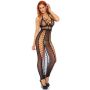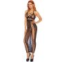 De Lange Halter Bodystocking Jurk is een elegante aanwinst. Deze lange jurk is gemaakt van netstof voor een spannende look. Het netstof is heerlijk zacht en soepel. De verschillende structuren van fijne en grove mazen geven speels effect. Deze nauwsluitende jurk van Leg Avenue is van hoge stretch kwaliteit. De jurk heeft een halter model en een open rug.