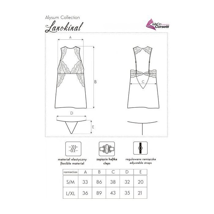 De Lanokinal Chemise wordt geleverd met een string. Combineer de betoverende Lanokinal Chemise met het geweldige Maranto Peignoir voor een complete luxueuze look!