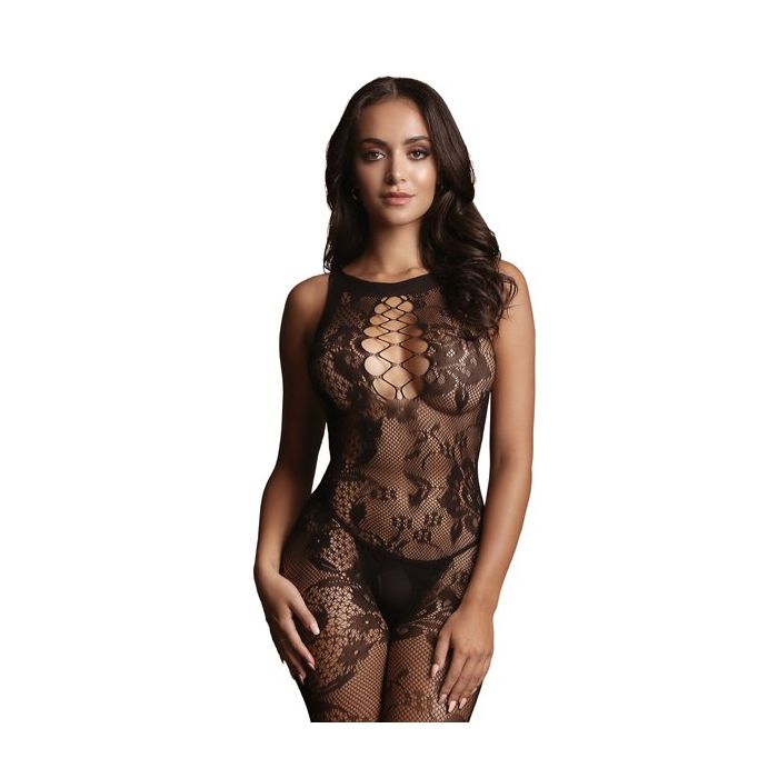De Criss Cross Kanten Bodystocking is een charmante creatie van het merk Le Désir. Deze strakke bodystocking is gemaakt van fijnmazig netstof met 4-way stretch kwaliteit. Het netstof heeft een sierlijk kanten uiterlijk door de bloem patronen. De bodystocking is mouwloos en heeft een speelse criss cross uitsparing in het decolleté. De criss cross uitsparing komt ook terug op de rug van de bodystocking.