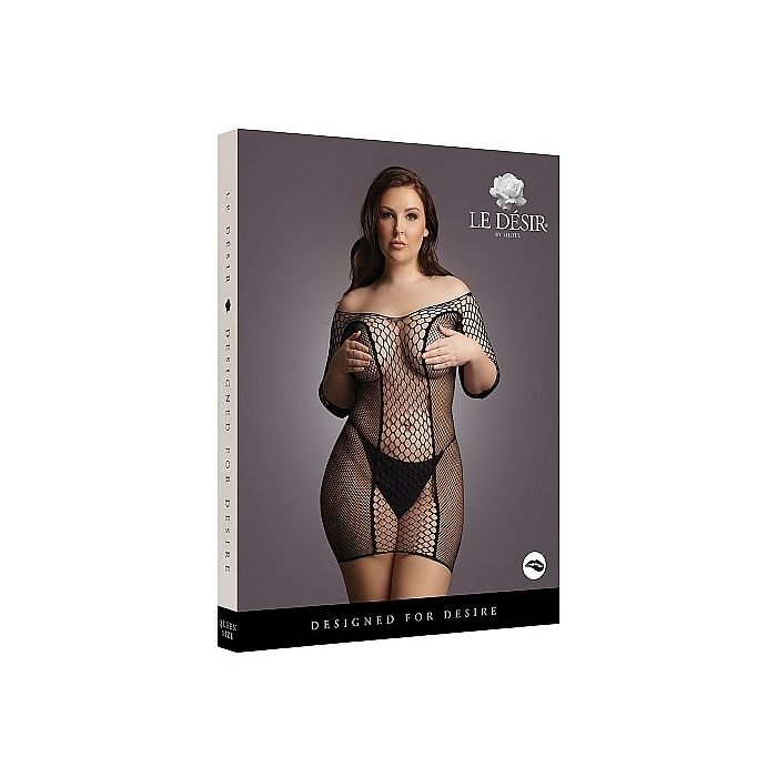 Le Désir Duo Net Sleeved Mini Jurkje - Plus Size