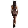Het jurkje heeft een stijlvolle halter hals. Het netstof bestaat uit grove en fijne structuren in speelse geweven patronen. Het opstaande kraagje is gemaakt van sierlijk bloemen kant.