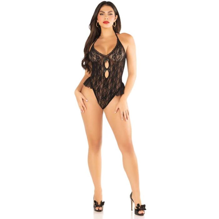 Maak je lingeriecollectie compleet met deze speelse kanten teddy van Leg Avenue. Dit prachtige bodysuit is gemaakt van rekbare en ademende kant, waardoor het niet alleen comfortabel is om te dragen, maar ook perfect aansluit op je lichaam. De verstelbare strikbandjes aan de achterkant zorgen ervoor dat je de pasvorm kunt aanpassen aan jouw unieke figuur, terwijl de schattige fladderende ruffle-accenten een speelse en flirterige uitstraling geven. Of je het nu draagt voor een speciale gelegenheid of gewoon om jezelf te verwennen, deze teddy is de ideale keuze om de sfeer te zetten en je zelfvertrouwen een boost te geven. Voeg een vleugje plezier en sensualiteit toe aan je lingerie met dit onweerstaanbare stuk!