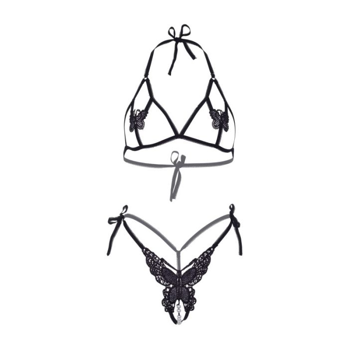 Leg Avenue Vlinder BH & Parel String - Zwart