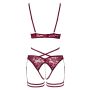 Abierta Fina Borstvrije Jarretel Lingerie Set - Rood