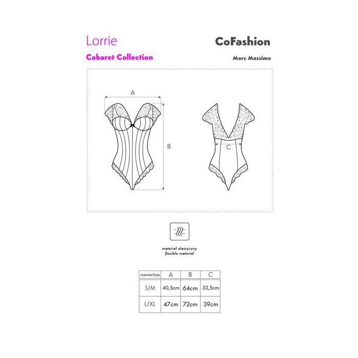 Let me tell you all a story about a body named Lorrie. De Lorrie Body - Zwart / Magenta is een chique body uit de Cabaret collectie van het merk CoFasion. De body heeft een zwart lijfje gemaakt van zijdezacht materiaal met verticale ton-sur-ton lijnen. De lijnen en de nauwsluitende zwarte stof laten jouw taille extra smal lijken. Rond de schouders is sierlijk bloemen kant aangebracht in een sprekende magenta kleur. Het kant komt onderaan terug.