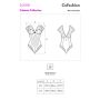 Het decolleté van de Lorrie is diep uitgesneden en de ongevoerde cups zijn afgewerkt met een elastische zoom ter ondersteuning. Tussen de cups is een sieraad aangebracht. De rug heeft een diepe V in het kant en de body heeft een sexy string model.