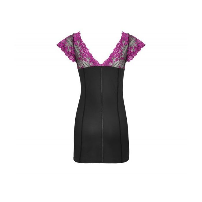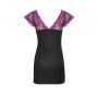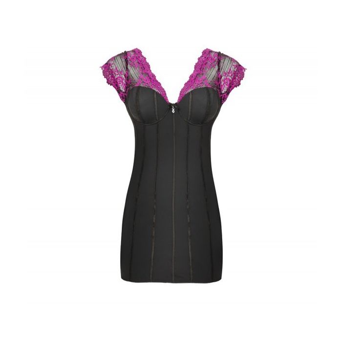 Het nachtjurkje heeft stijlvolle lijnen en is aan de bovenkant gemaakt van sierlijk tweekleurig bloemen kant. Het kant loopt vanaf de cups over de schouders naar de rug, voor een charmant effect met speelse kapmouwtjes met geschulpte randjes. Draag dit jurkje met de bijgeleverde string van zwart tule en vul de avond met liefde.