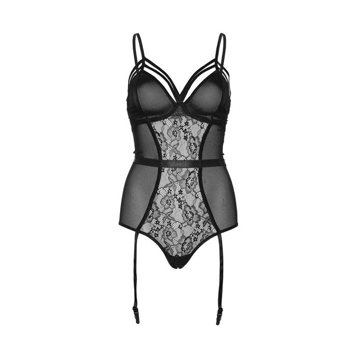 Door de jarretelbandjes is deze body te combineren met pantykousen voor een spannend geheel.