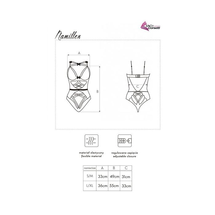 De romantische Namillen Open Cups Body - Zwart van Livco Corsetti is een erg erotische aanwinst. Deze prachtige body is gemaakt van sierlijk bloemen kant van hoge kwaliteit. Het kant is rekbaar voor een perfecte pasvorm. De body heeft een opengewerkt design, afgewerkt met straps gemaakt van kant.