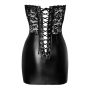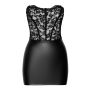 Deze zwarte, schoudervrije tube mini-jurk van Noir is de perfecte keuze voor een avondje uit of een speciale gelegenheid. Gemaakt van een elegante materiaalmix, combineert de jurk fijne kant aan de bovenkant met een matte, glanzende power wetlook voor de rok, wat zorgt voor een opvallende en luxe uitstraling. Het zachte en elastische materiaal omarmt je lichaam op een comfortabele manier, waardoor je je de hele avond vrij kunt bewegen. De jurk heeft een getailleerde korsetstijl met accentuerende naden aan de voorkant, die je figuur prachtig benadrukken. Aan de achterkant vind je een open vetersluiting die tot aan de onderkant doorloopt, waardoor je de jurk op een stijlvolle manier kunt strikken en aanpassen aan je lichaam. Deze jurk is niet alleen een mode-statement, maar ook een echte blikvanger die je zelfvertrouwen een boost geeft!