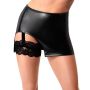 Wat deze minirok echt uniek maakt, is de stijlvolle uitsparing aan de zijkant van de zoom. Dit speelse detail voegt een vleugje sensualiteit toe aan het ontwerp, terwijl de stevig vastgenaaide band met kanten kousenband een extra dimensie van verfijning biedt. De combinatie van de wetlook stof en de kanten details zorgt voor een gedurfde, maar toch elegante uitstraling die perfect is voor de moderne vrouw die graag opvalt.