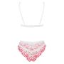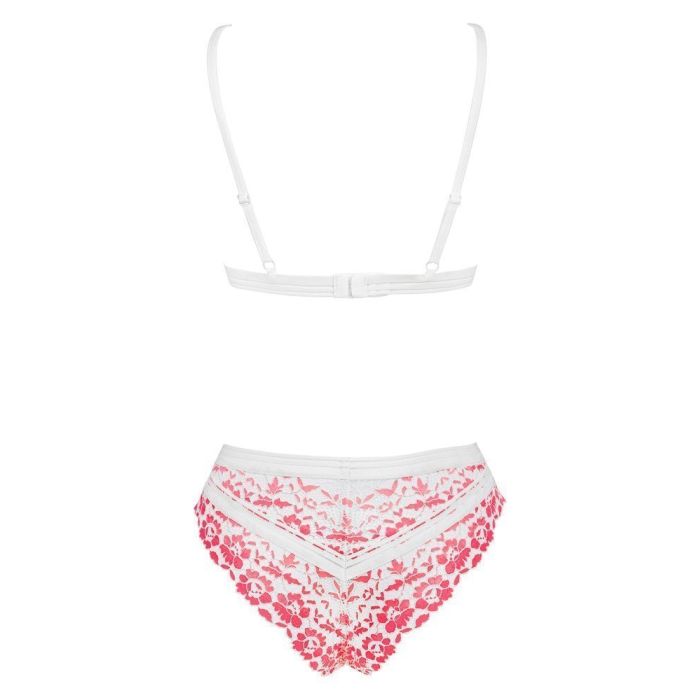 Zo zoet als suiker! Dat is deze lingerie set van het geweldige merk Obsessive. Deze prachtige lingerie set bestaat uit een beha en slip en is vervaardigd van fijn 2-kleurig kant met rijkelijk ingewerkte witte stretchbandjes voor optimaal comfort. De lingerie set is zijdezacht en super elastisch waardoor het heerlijk zit. Zowel de haaksluiting aan de achterkant van de beha als de bandjes zijn volledig verstelbaar voor dé perfecte pasvorm. De bijpassende slip scoort met zijn prachtige pasvorm, die de benen en billen op spannende wijze benadrukt.