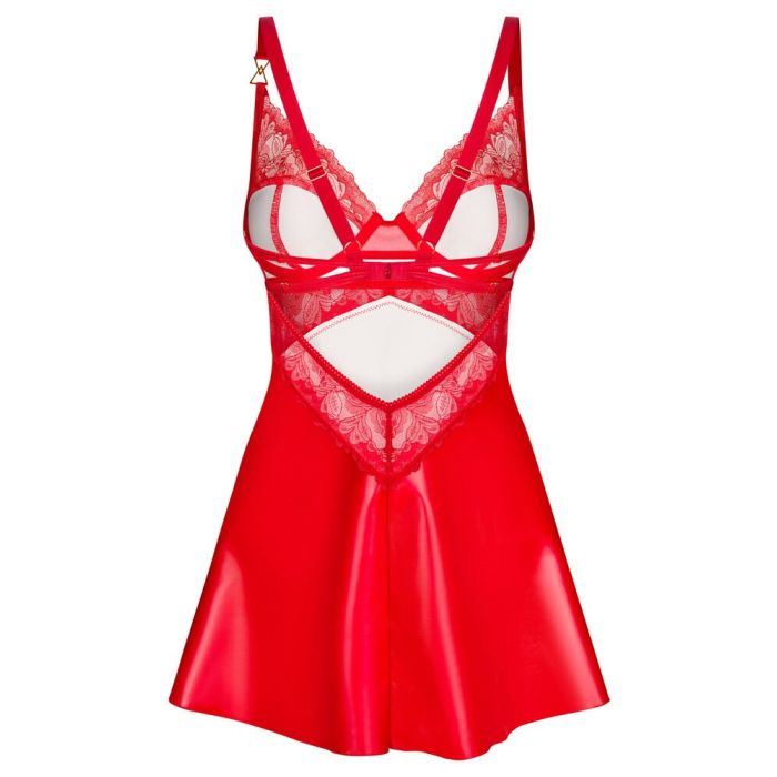 Maak kennis met de Aliosa set van Obsessive, een onweerstaanbare combinatie van sensualiteit en elegantie. Deze set bestaat uit een korte, uitlopende negligé en een bijpassende string, allemaal in een betoverend sensueel rood. De glanzende stof geeft een luxe uitstraling, terwijl het fijne, transparante bloemenkant een speelse en verleidelijke touch toevoegt. Of je nu een speciale gelegenheid hebt of gewoon jezelf wilt verwennen, deze set is perfect om je zelfvertrouwen een boost te geven.