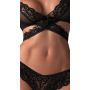 Ontdek de betoverende 2-delige zwart en transparante set Blomentis van Obsessive, een perfecte combinatie van elegantie en sensualiteit. Deze set bestaat uit een prachtig bh en een bijpassend slipje, vervaardigd uit een luxe materiaalmix van weelderige kant en fijne stretchtule. De zachte en elastische stof omarmt je lichaam op een comfortabele manier, waardoor je je de hele dag door zelfverzekerd en aantrekkelijk voelt. De combinatie van zwart en transparant geeft een verleidelijk effect, perfect voor speciale gelegenheden of om jezelf gewoon te verwennen.