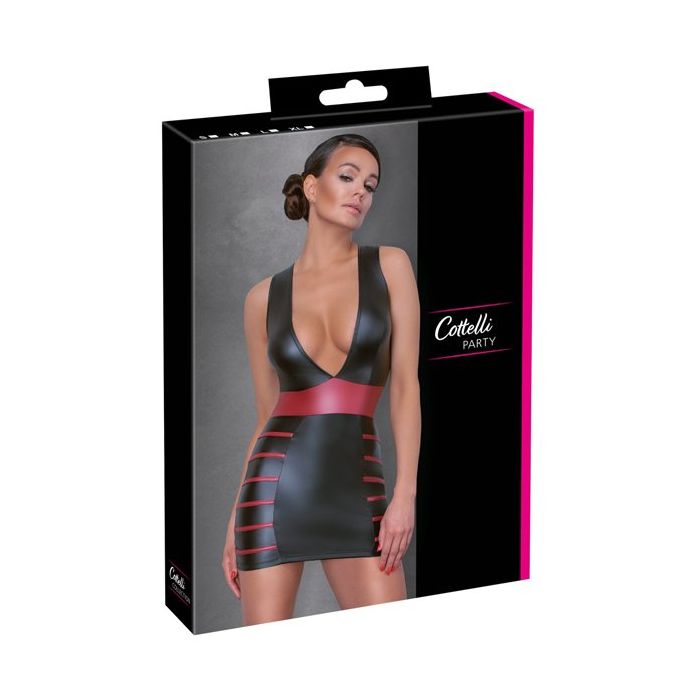 Het Party Jurkje Deep V komt uit de Party lijn van Cottelli Collection. Dit strakke jurkje is gemaakt van mat zwart leder look materiaal met stretch. Het gladde materiaal zit heerlijk knus rond jouw rondingen en accentueert jouw vrouwelijke vormen.