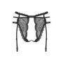 Het open kruis loopt helemaal vanaf het schaambeen door tot boven het staartbeen. Dit geeft een opwindende look. Aan de slip zijn 4 verstelbare jarretelbandjes gehecht. Voeg zelf kousen aan de slip toe voor een verleidelijke combinatie!