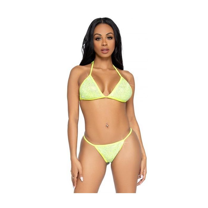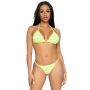 In de Phoenix Bikini Set - Geel maak jij een sprankelende indruk aan het zwembad of op een strandfeest! Deze tweedelige bikini set bestaat uit een triangel bikini top en een Brazilian bikinibroekje. De set is gemaakt van heerlijk zachte stretch stof in een opvallende neon gele kleur.