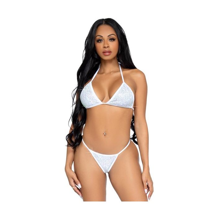 Een frisse witte kleur, schitterende strass steentjes en een weinig bedekkend model. Met de Phoenix Bikini Set - Wit ben jij klaar voor de zomer! In deze tweedelige bikini set steel jij de show op ieder strand feest of festival. De set is te dragen als bikini naar het strand maar ook te dragen met een short of rokje voor een sexy party look.