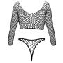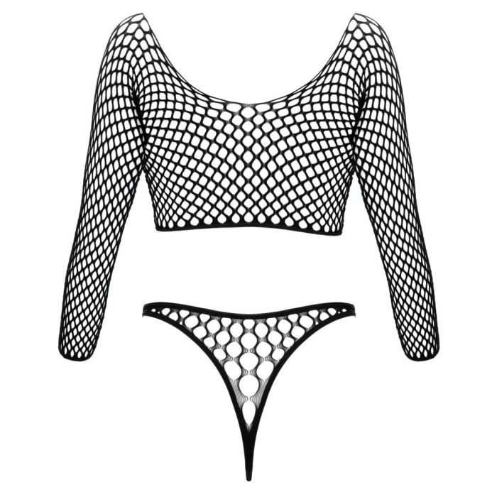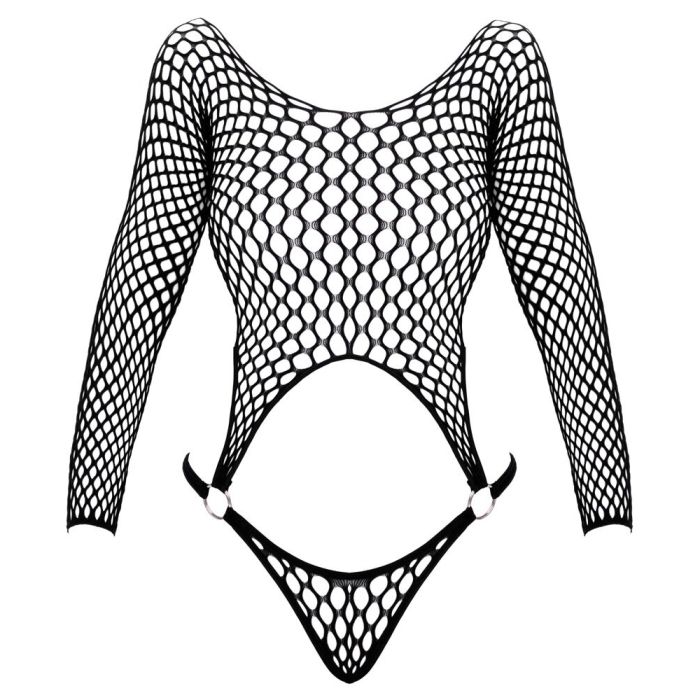 De Riobody met Lange Mouwen Fantasy van Cottelli is ontworpen om hete fantasieën tot leven te brengen, met modieus grote mazen die een speelse en sensuele uitstraling geven. De geraffineerde tweedelige look, met een topje met lange mouwen en een string die elegant aan de voorkant is verbonden met twee decoratieve zilverkleurige ringen, zorgt voor een unieke en gedurfde stijl. De hoge beenuitsnijdingen accentueren je billen en benen perfect, waardoor je een onweerstaanbare uitstraling hebt. Bovendien is de body gemaakt van een zeer elastisch en zacht materiaal dat optimaal comfort biedt, zodat je je de hele avond zelfverzekerd en sexy voelt. Voeg deze must-have toe aan je lingeriecollectie en laat je fantasieën de vrije loop!