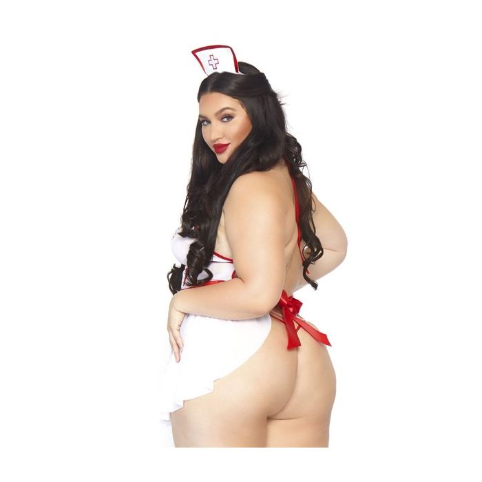 De Roleplay Nightshift Nurse Plus Size is een spannende set van het merk Leg Avenue. De set bestaat uit een halter babydoll, een string en een haarband. De set is gemaakt van soepel vallende, zachte stof met rode zomen en details.