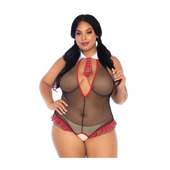 De Roleplay Schoolgirl Plus Size is een spannende set van het merk Leg Avenue. De set bestaat uit een fijn geweven netstof body en een stropdas. De body laat maar weinig aan de verbeelding over door het semi-transparante materiaal.