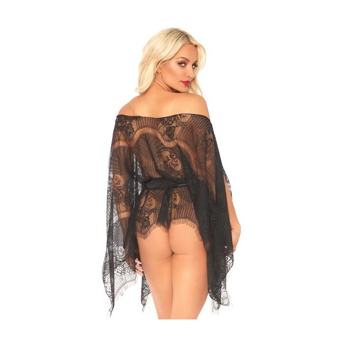 De Romantisch Kanten Set van Leg Avenue is een prachtige 3-delige set gemaakt van doorschijnend netstof en kant met sierlijke bloemen. De top valt soepel rond je lichaam, heeft een off-shoulder model en lange, wijde mouwen. De randen van de top zijn afgewerkt met kleine franjes. Bij de top worden een satijnen ceintuur en een kanten string geleverd, voor een complete sexy lingerie set.